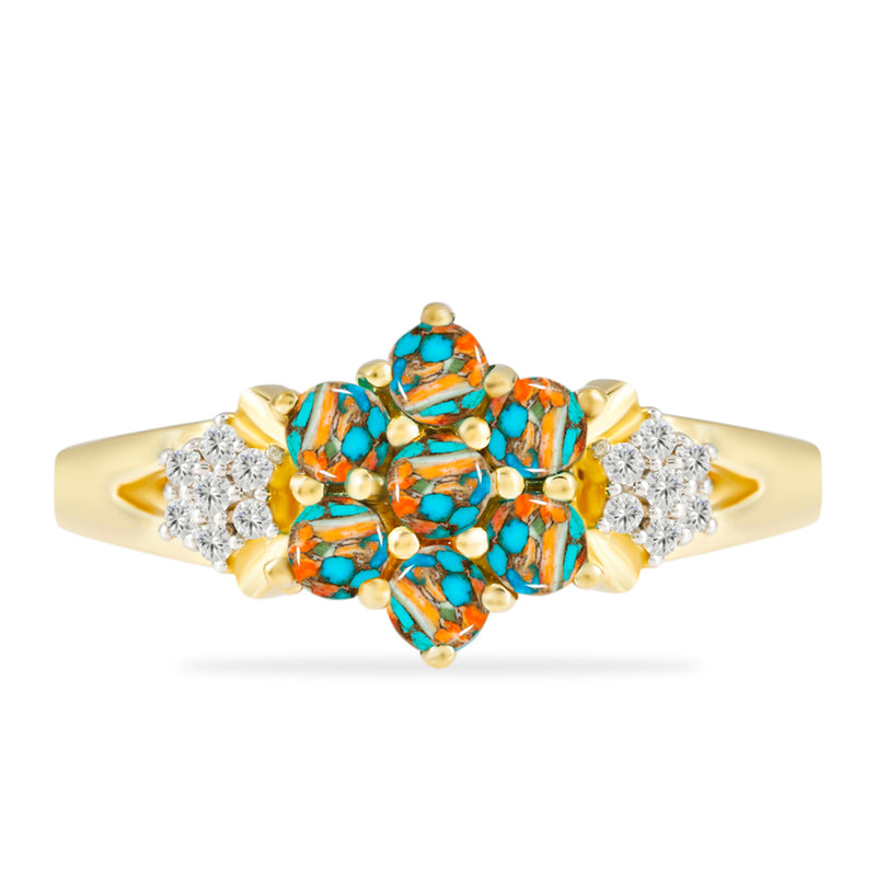 Pozlacený Stříbrný Prsten s Ústřicovým Tyrkysem a Bílým Topazem