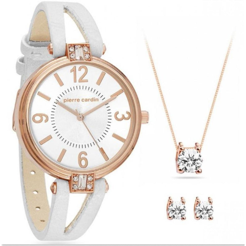 Pierre Cardin Sada Dámských Hodinek s Křišťálem s 2 páry Náušnic a Náhrdelníkem jako Dárek