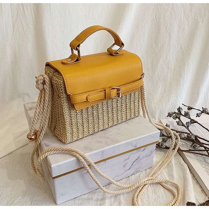 Dámská Pletená Kabelka s Hořčicovou Eko-Kůží