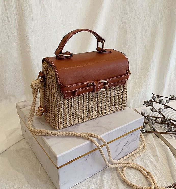 Dámská Pletená Kabelka s Hnědou Eko-Kůží