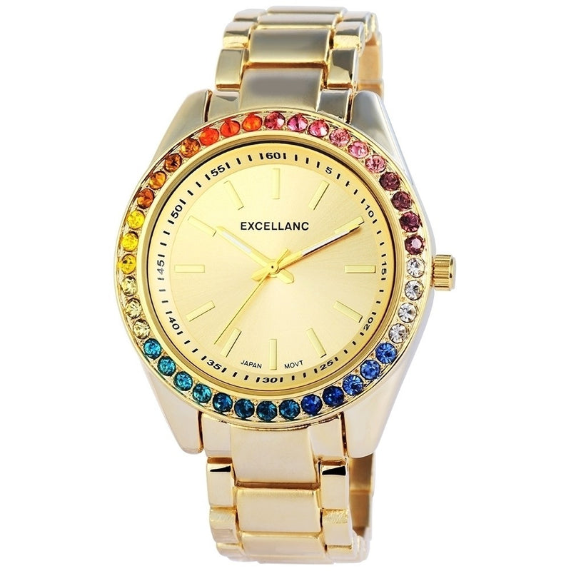 Excellanc dámské hodinky s kovovým řemínkem, zlatá barva, vysoce kvalitní křemenný mechanismus, ciferník zlaté barvy