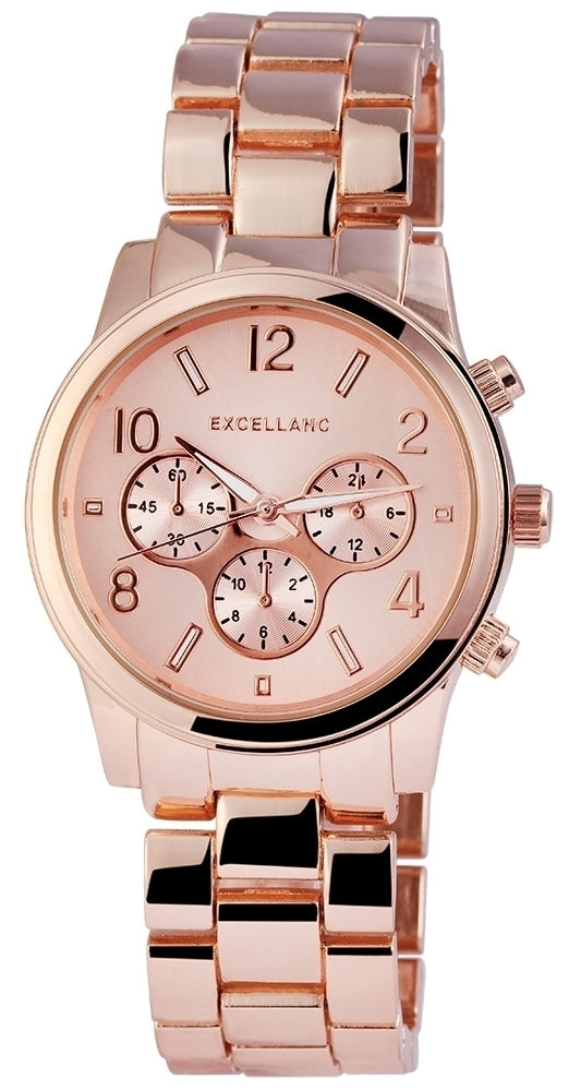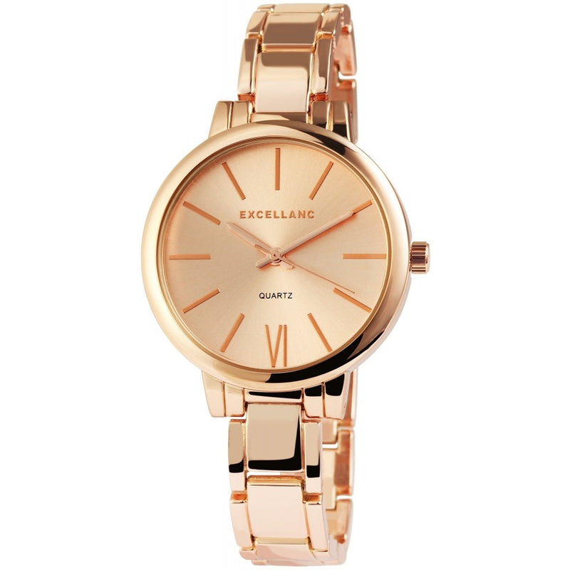Dámské náramkové hodinky Excellanc s kovovým řemínkem, barva růžového zlata, japonská quartzová struktura, růžově zlatý ciferník