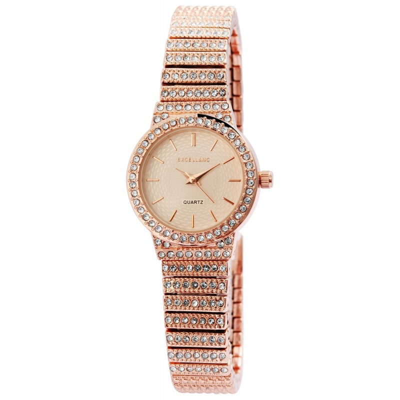 Excellanc dámské hodinky s kovovým řemínkem EX0113, barva růžového zlata, vysoce kvalitní křemenný mechanismus, ciferník v barvě růžového zlata