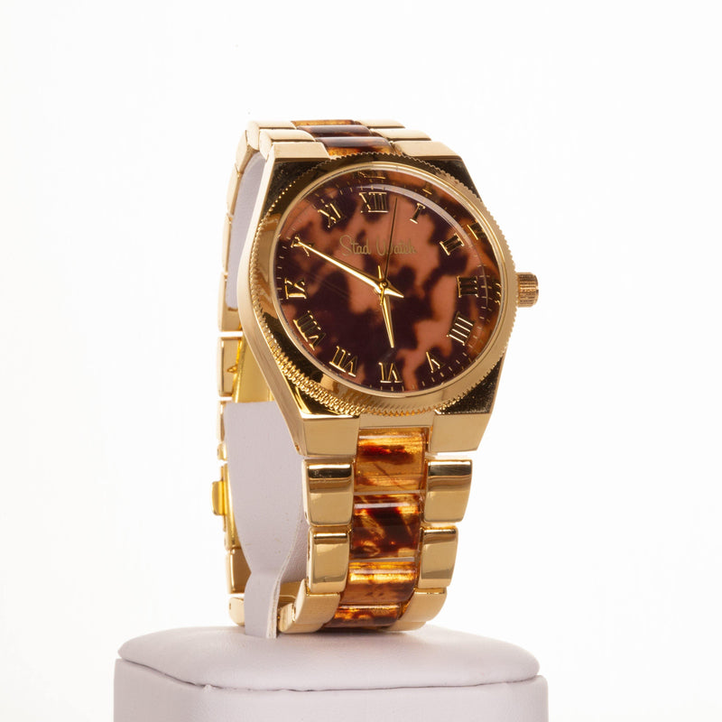Dámské hodinky zlaté barvy s tygřími proužky a ciferníkem s římskými číslicemi