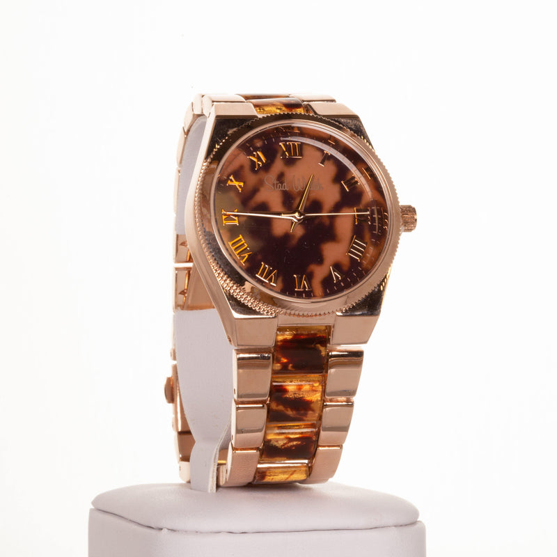 Dámské hodinky v barvě růžového zlata s tygřími proužky a ciferníkem s římskými číslicemi