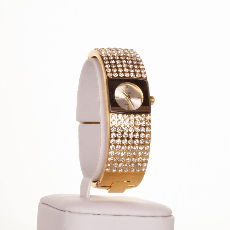 CUSSI dámské hodinky ve zlaté barvě se 7 řadami krystalů křemene