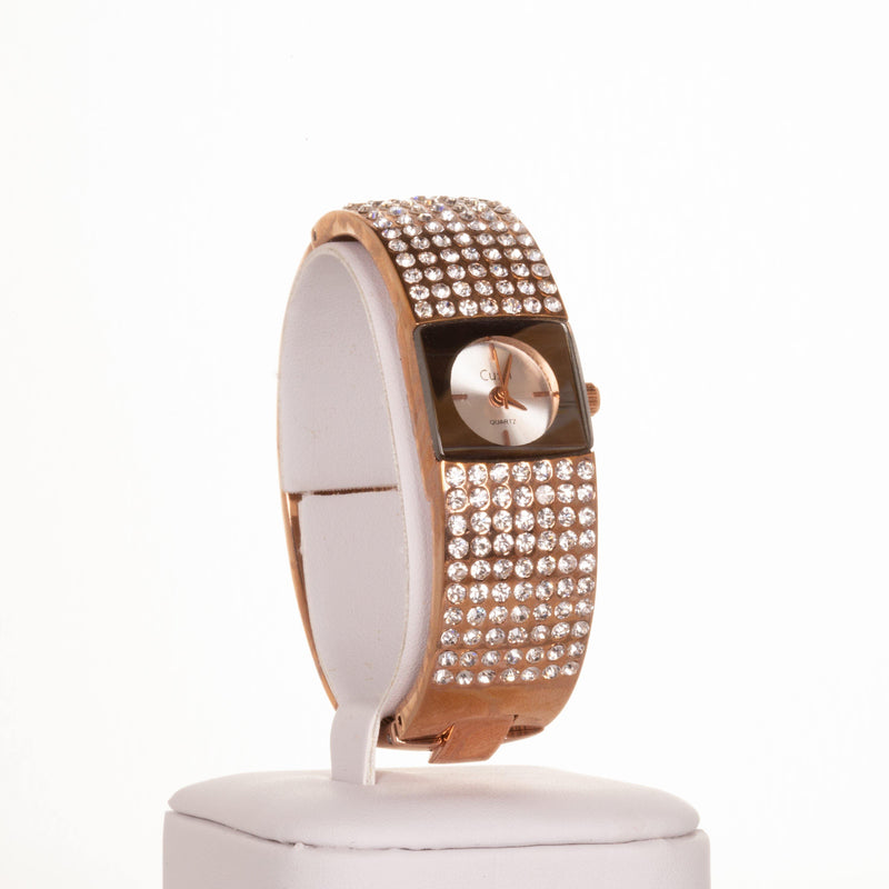 CUSSI dámské hodinky v barvě růžového zlata se 7 řadami krystalů křemene