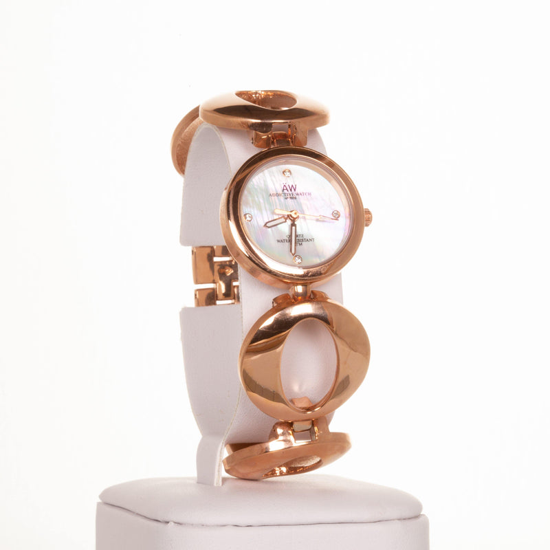 AW dámské hodinky v barvě růžového zlata s řemínkem se symbolem nekonečna a 4 krystaly křemenu