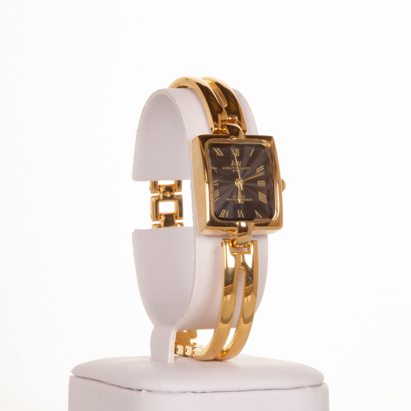 AW dámské hodinky v barvě zlata s černým ciferníkem s římskými číslicemi