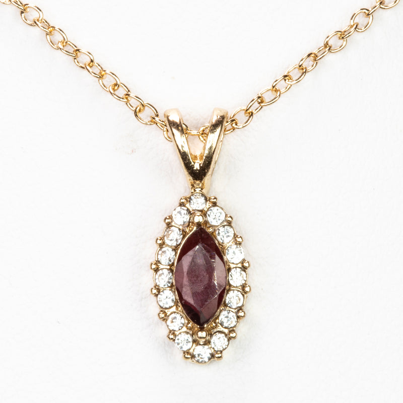 Pozlacený Slitinový Náhrdelník s Granátem a Bílým Emporia® Křišťálem ( Náhrdelník+Přívěsek )