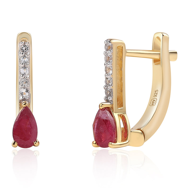 Pozlacené Stříbrné Náušnice s Mozambickým Rubínem a Bílým Topazem