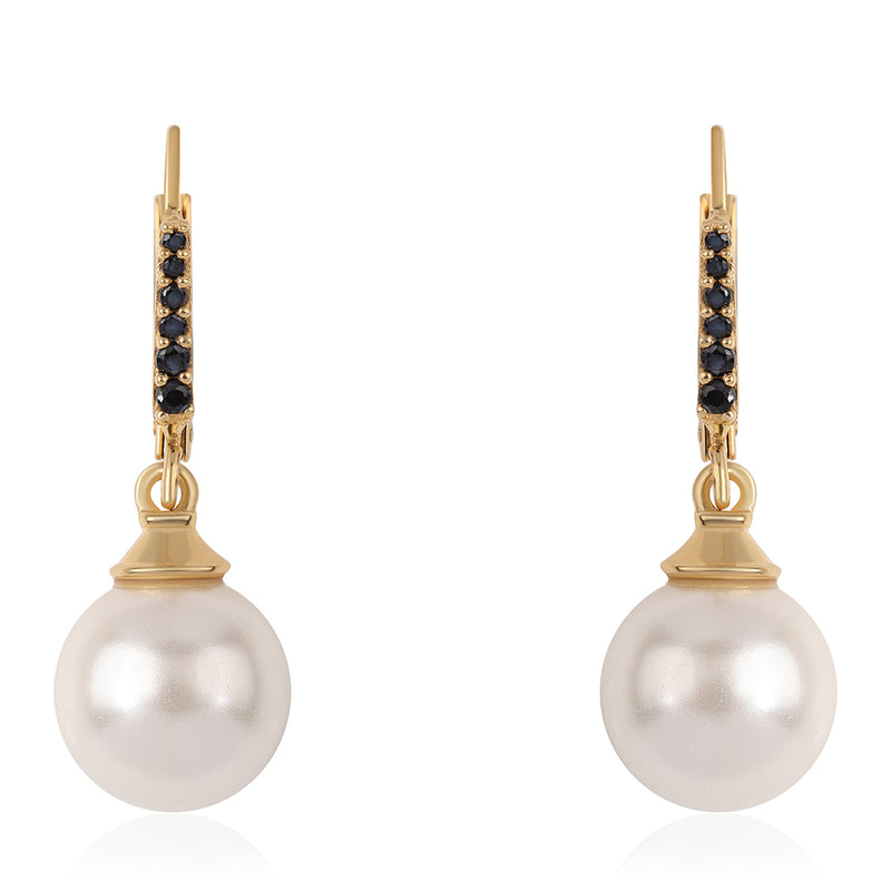 Pozlacené Stříbrné Náušnice s Černým spinelem a Bílou Sladkovodní Perlou