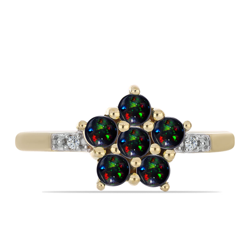 Pozlacený Stříbrný Prsten s Půlnočně Černým Etiopským Opálem z Lega Dembi a Bílým Topazem