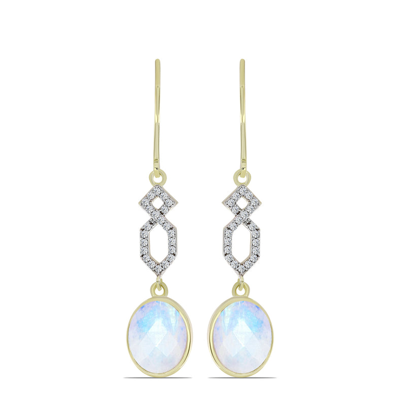 Pozlacené Stříbrné Náušnice s Duhovým Měsíčním Kamenem a Bílým Topazem
