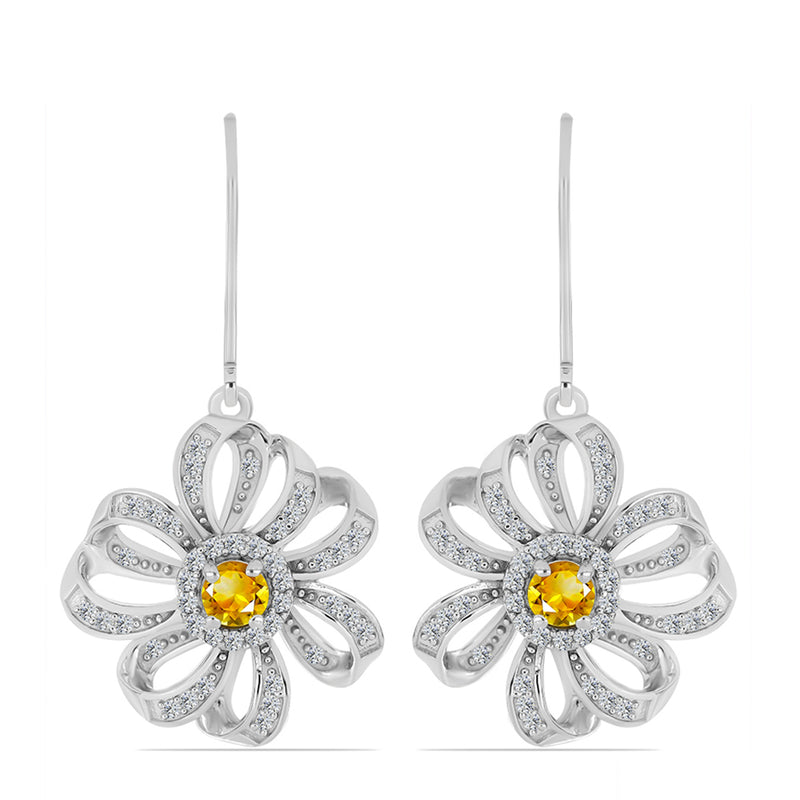 Stříbrné Náušnice s Uralským Citrínem a Bílým Topazem