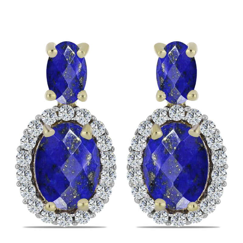 Pozlacené Stříbrné Náušnice s Lapisem Lazuli a Bílým Topazem