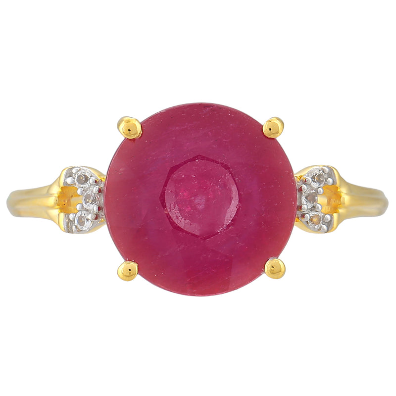 Pozlacený Stříbrný Prsten s Thajským Rubínem a Bílým Topazem