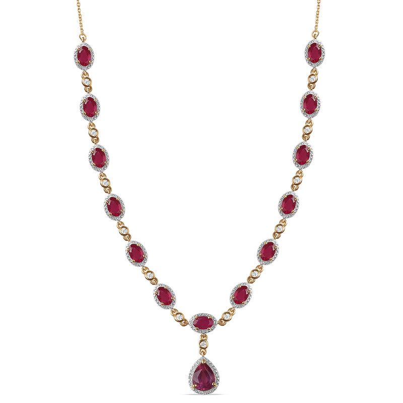 Pozlacený Slitinový Náhrdelník s Rubínem a Bílým Emporia® Křišťálem