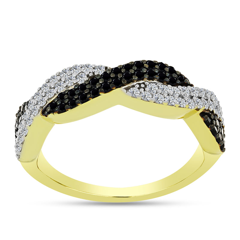 Pozlacený Stříbrný Prsten s Černým spinelem a Bílým Topazem