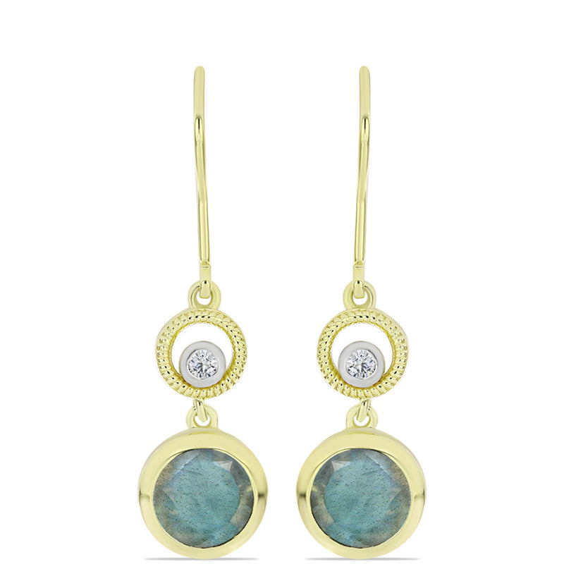 Pozlacené Stříbrné Náušnice s Labradoritem a Bílým Topazem