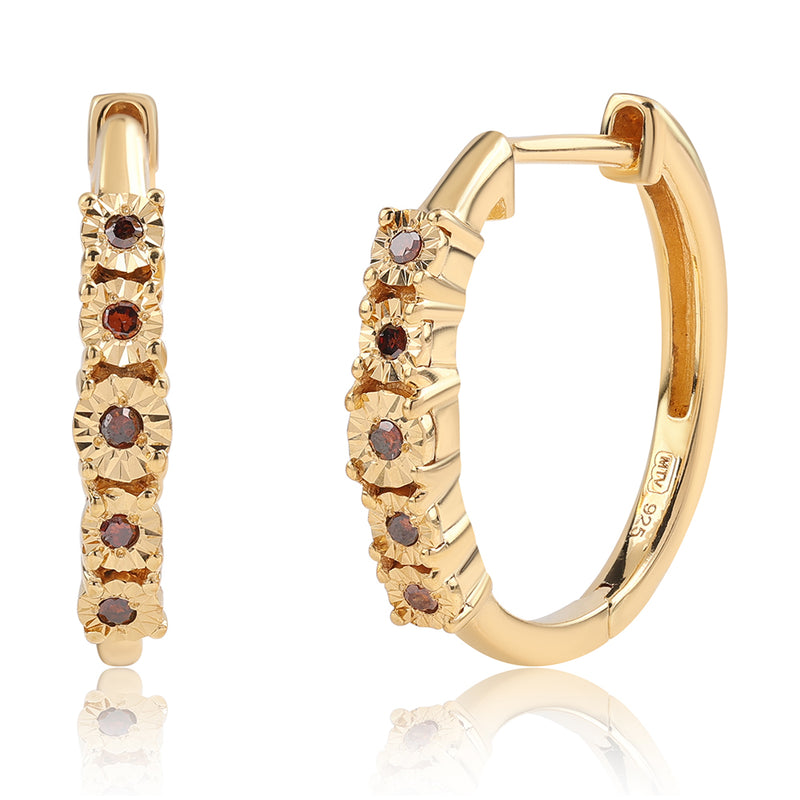 Pozlacené Stříbrné Náušnice s Červeným Diamantem