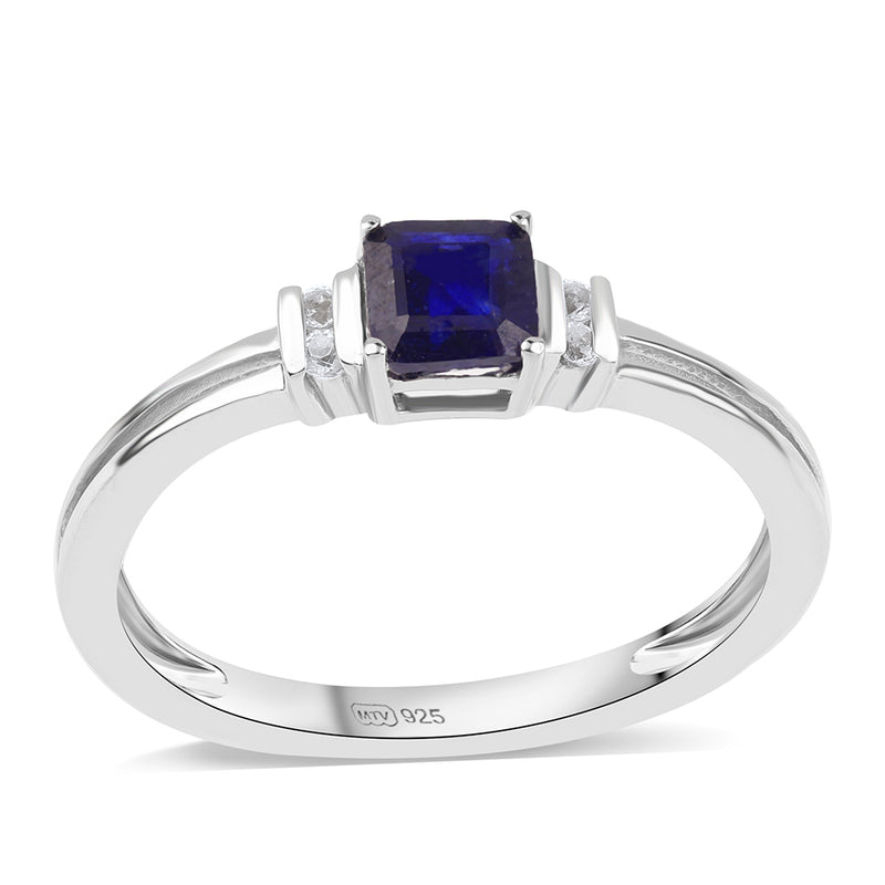 Stříbrný Prsten s Australským Modrým Safírem a Bílým Topazem