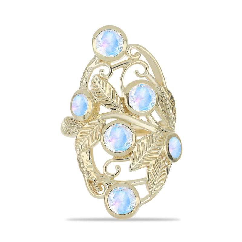 Pozlacený Stříbrný Prsten s Duhovým Měsíčním Kamenem