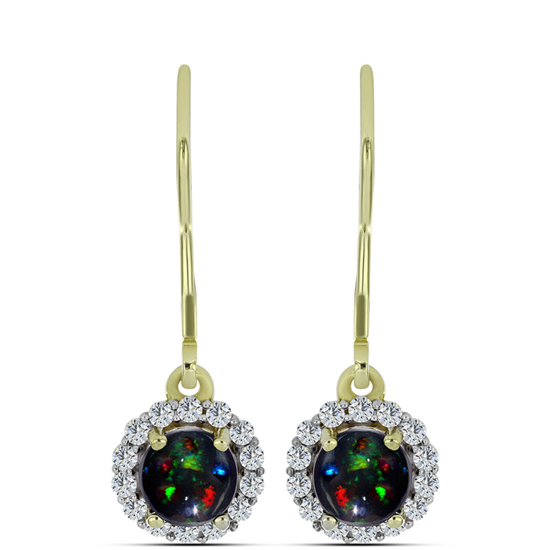 Pozlacené Stříbrné Náušnice s Půlnočně Černým Etiopským Opálem z Lega Dembi a Bílým Topazem