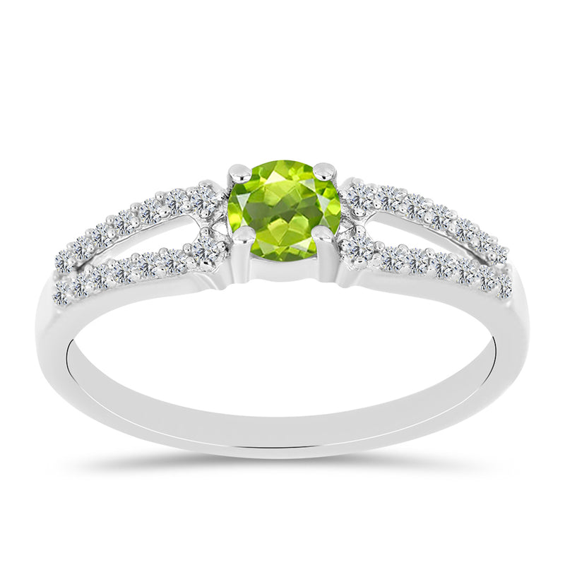 Stříbrný Prsten s Čchang-pajským Peridotem a Bílým Topazem