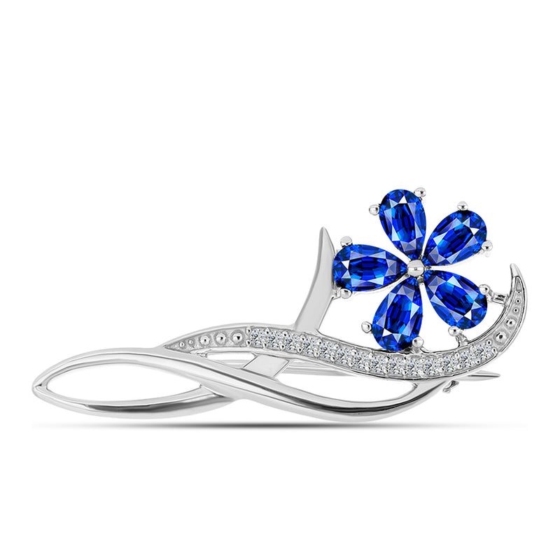 Stříbrný Brož s Australským Modrým Safírem a Bílým Topazem