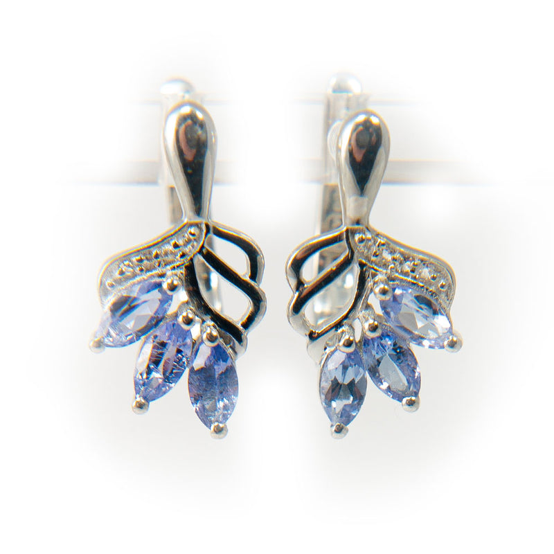 Stříbrné Náušnice s AAA Tanzanitem a Bílým Topazem