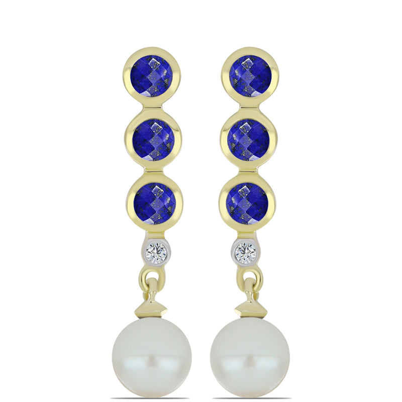 Pozlacené Stříbrné Náušnice s Lapisem Lazuli a Bílou Sladkovodní Perlou