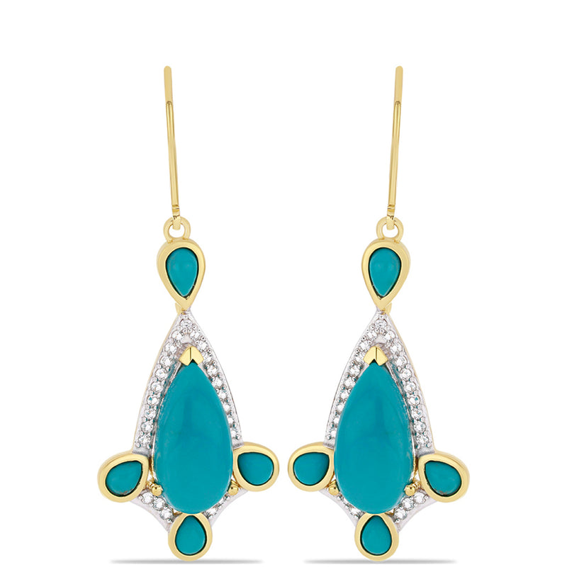 Pozlacené Stříbrné Náušnice s Tyrkysem Sleeping Beauty a Bílým Topazem
