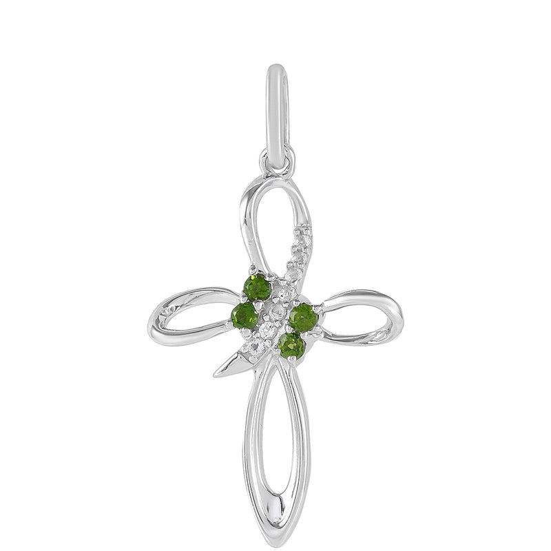 Kříž Stříbrný Přívěsek s Chromovým Diopsidem a Bílým Topazem