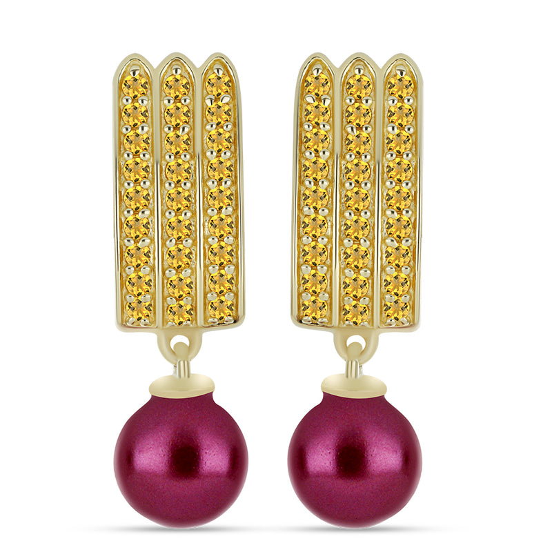 Pozlacené Stříbrné Náušnice s Fialová Sladkovodní Perlou a Uralským Citrínem