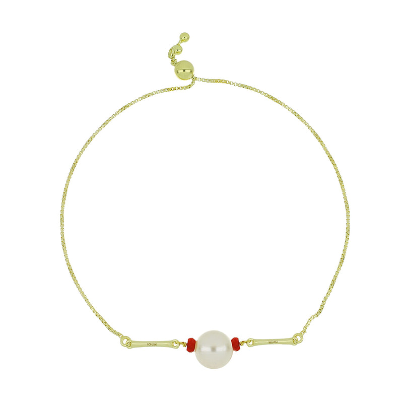 Pozlacený Stříbrný Náramek s Bílou Sladkovodní Perlou a Madagaskarským Rubínem