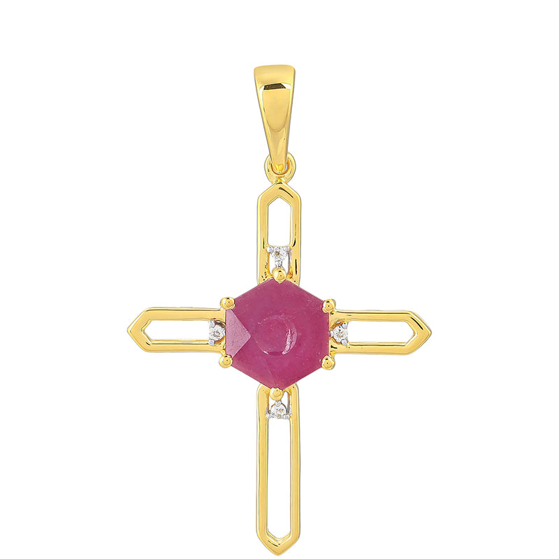 Kříž Pozlacený Stříbrný Přívěsek s Thajským Rubínem a Bílým Topazem
