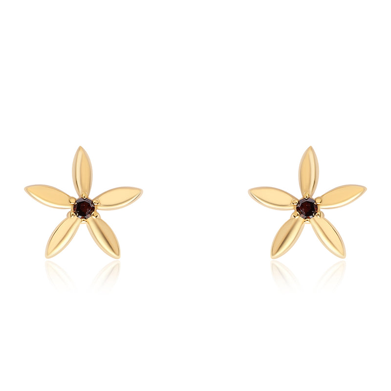 Pozlacené Stříbrné Náušnice s Červeným Diamantem