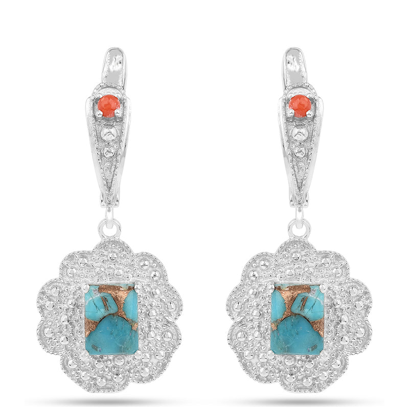 Stříbrné Náušnice s Ústřicovým Tyrkysem a Červeným Korálem