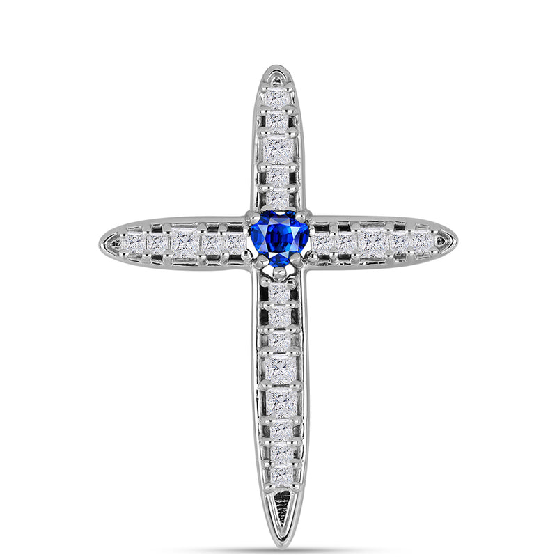 Kříž Stříbrný Přívěsek s Australským Modrým Safírem a Bílým Zirkonem