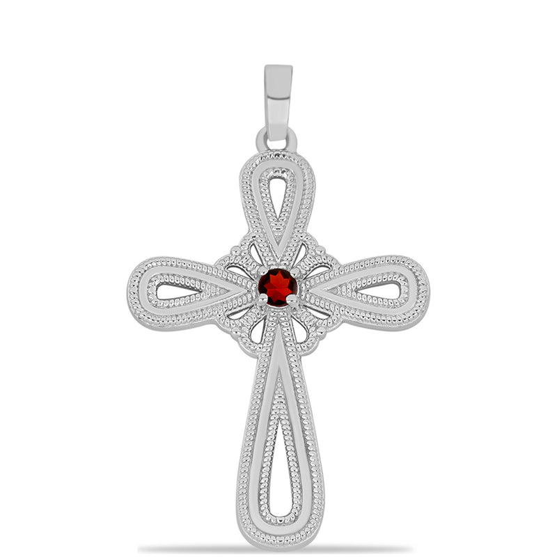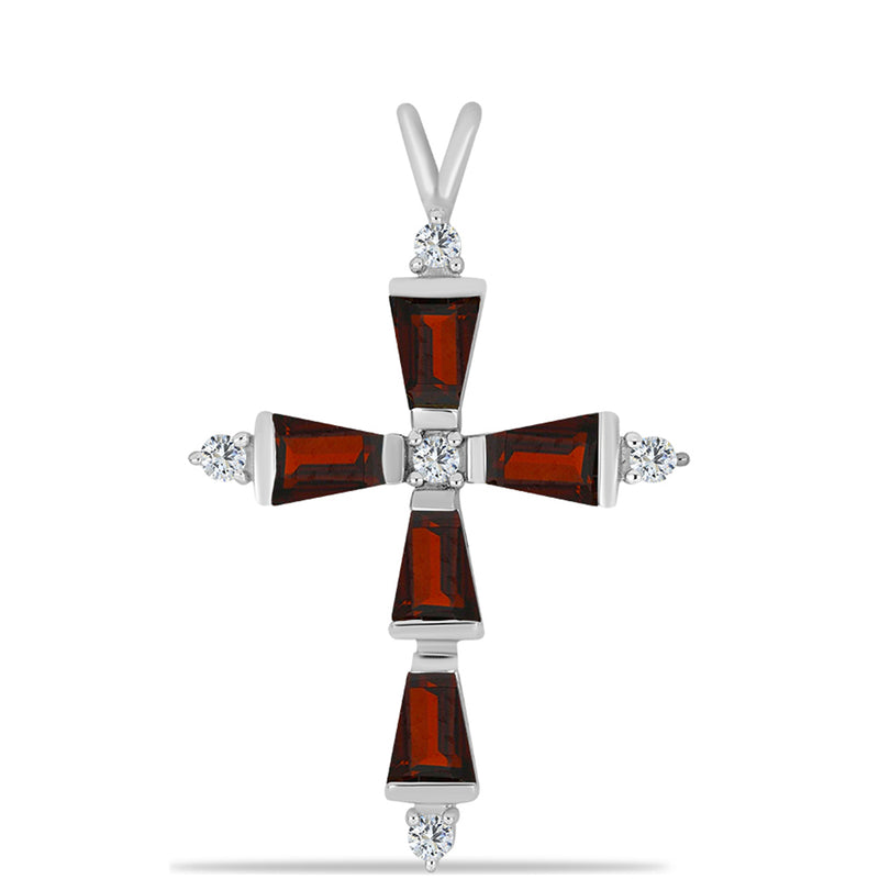 Kříž Stříbrný Přívěsek s Bartonským Granátem a Bílým Topazem