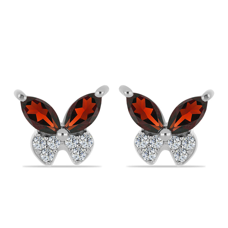 Stříbrné Náušnice s Bartonským Granátem a Bílým Topazem