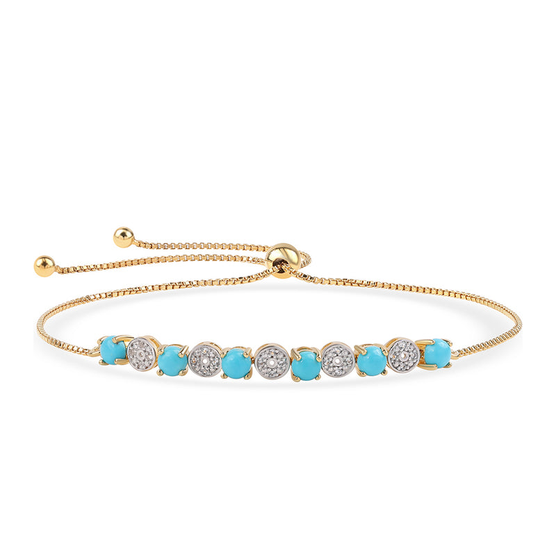 Pozlacený Stříbrný Náramek s Tyrkysem Sleeping Beauty a Bílým Topazem