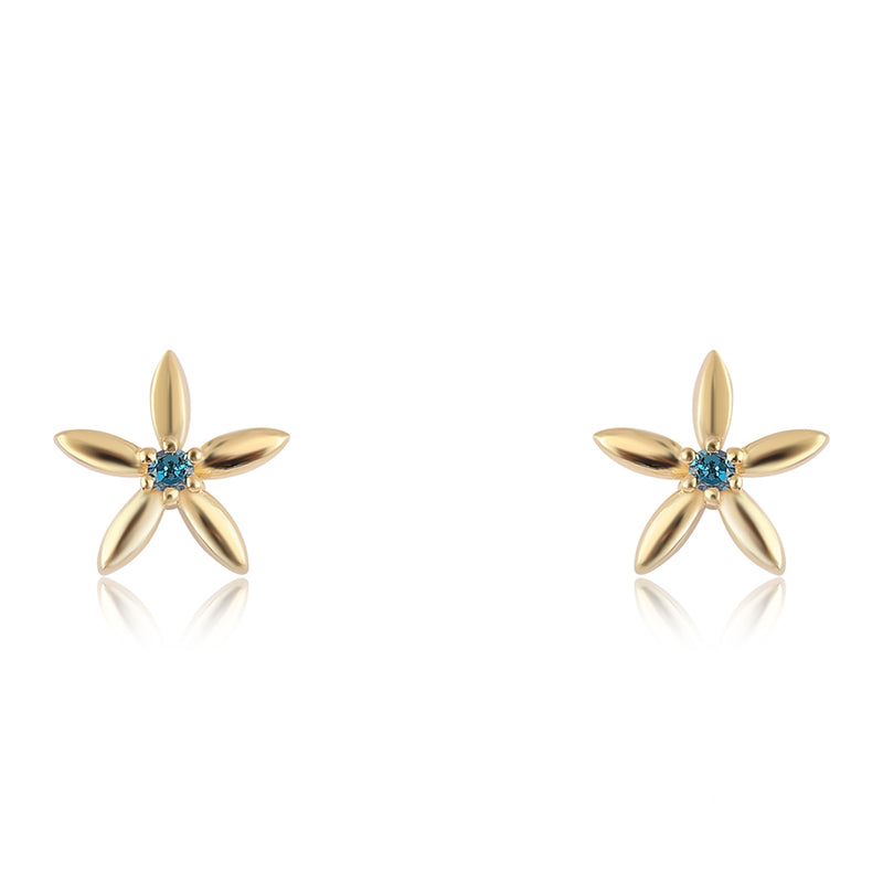 Pozlacené Stříbrné Náušnice s Modrým Diamantem