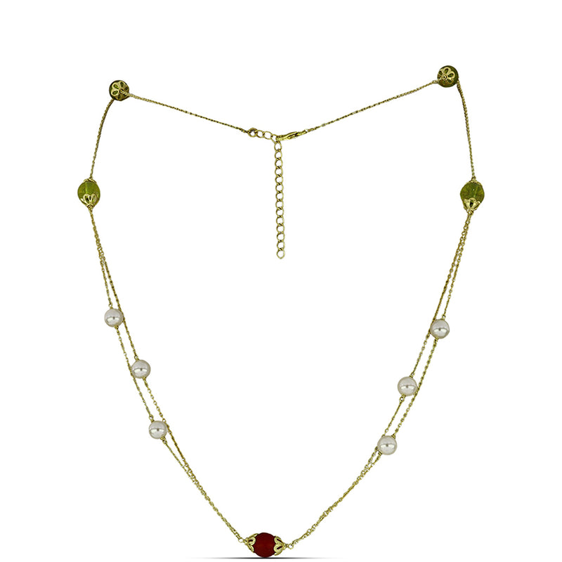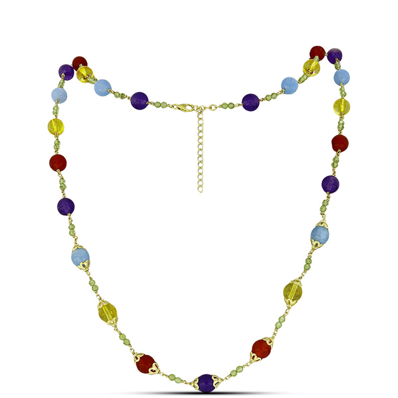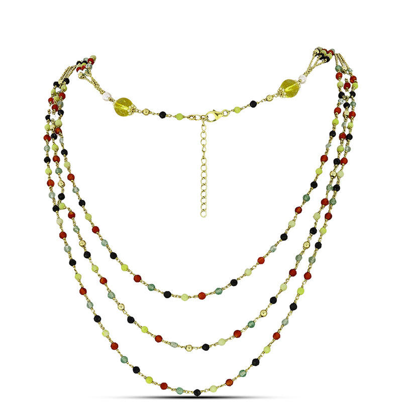 Pozlacený Stříbrný Náhrdelník s Uralským Citrínem a Karneolem