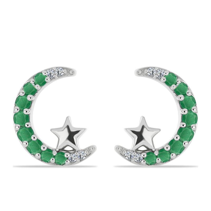 Stříbrné Náušnice s Brazilským Smaragdem a Bílým Topazem