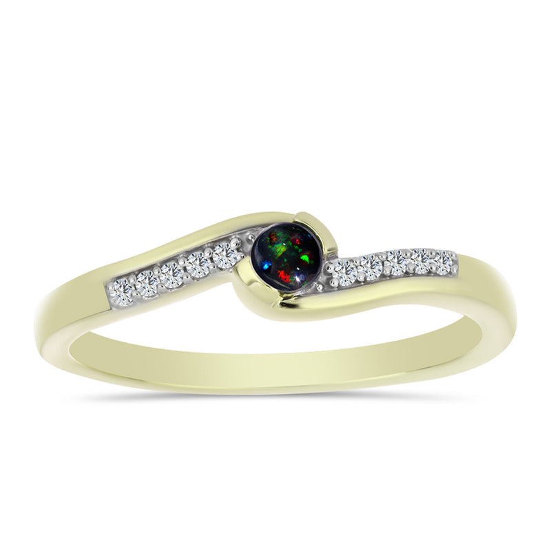 Pozlacený Stříbrný Prsten s Půlnočně Černým Etiopským Opálem z Lega Dembi a Bílým Topazem