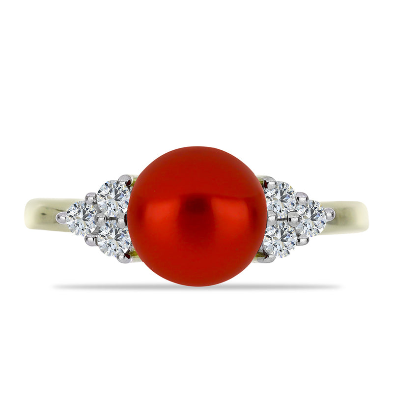 Pozlacený Stříbrný Prsten s Červená sladkovodní Perlou a Bílým Topazem
