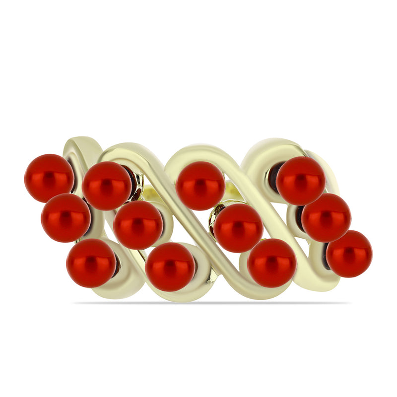 Pozlacený Stříbrný Prsten s Červená sladkovodní Perlou
