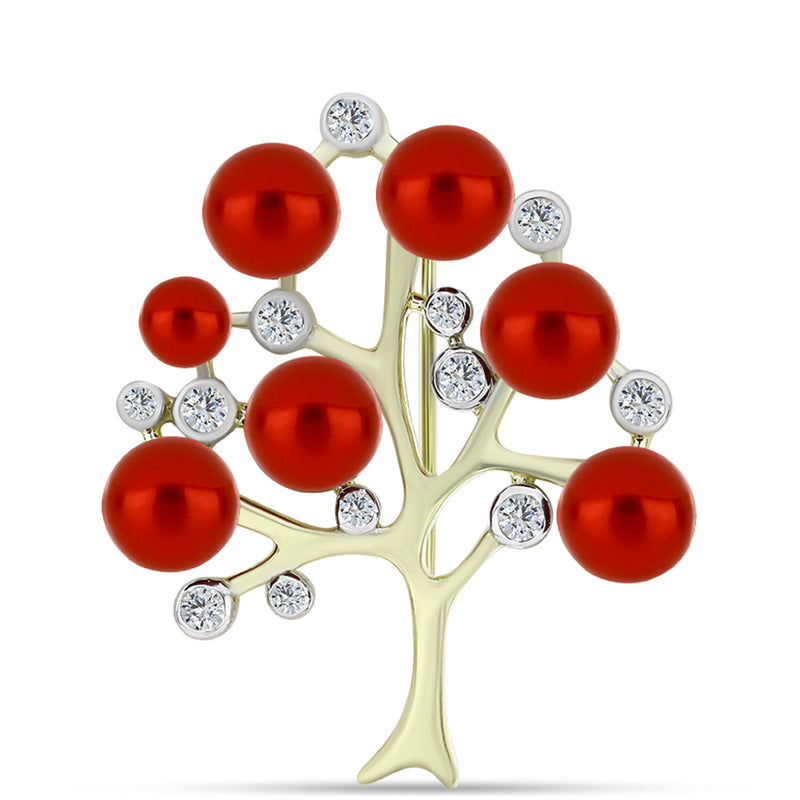 Pozlacený Stříbrný Brož s Červená sladkovodní Perlou a Bílým Topazem
